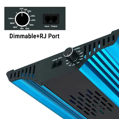 Daisy chain dimming for commercial growers to control the LED hydroponic grow light by group. Dimmable with on/off switch function, you can dim power range from 0% to 100%. Daisy chain connect up to 30 horticulture grow lights and control them together.