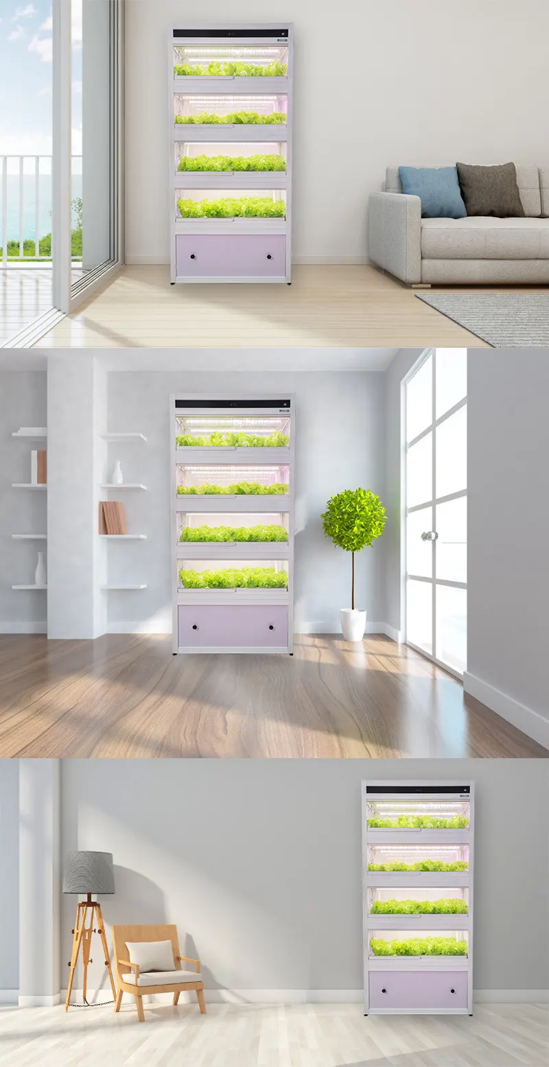 The market for indoor gardening solutions is booming, with consumers seeking sustainable ways to bring nature indoors. Our Vertical Hydroponic Garden SG40T is perfect for home gardening, hydroponic education, grocery stores, markets, restaurants, and cafés. It can also be custom-sized for container growing and plant factories. ● Enclosed Cabinet ● Unaffected by the external environment ● Free of insects and dust